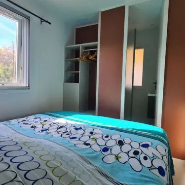 34m² de surface, chambre avec 1 lit double, 2 chambres avec 2 lits simples, séjour convertible, coin cuisine, salle d'eau, WC séparés, terrasse...