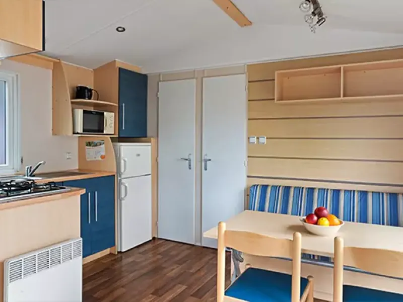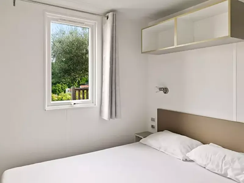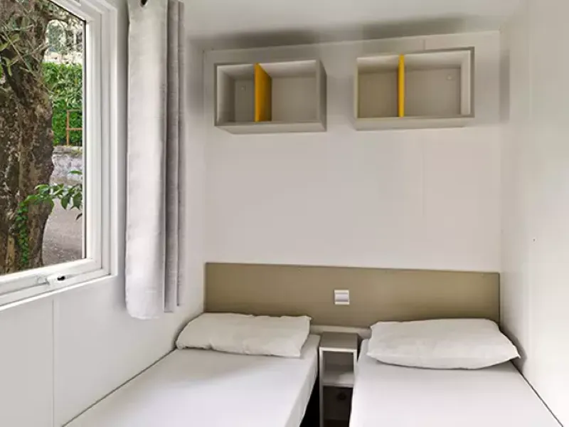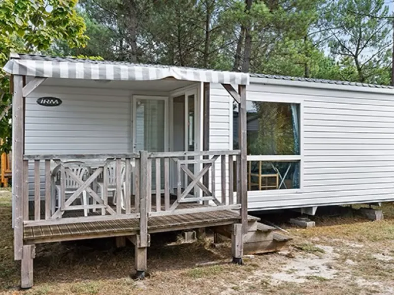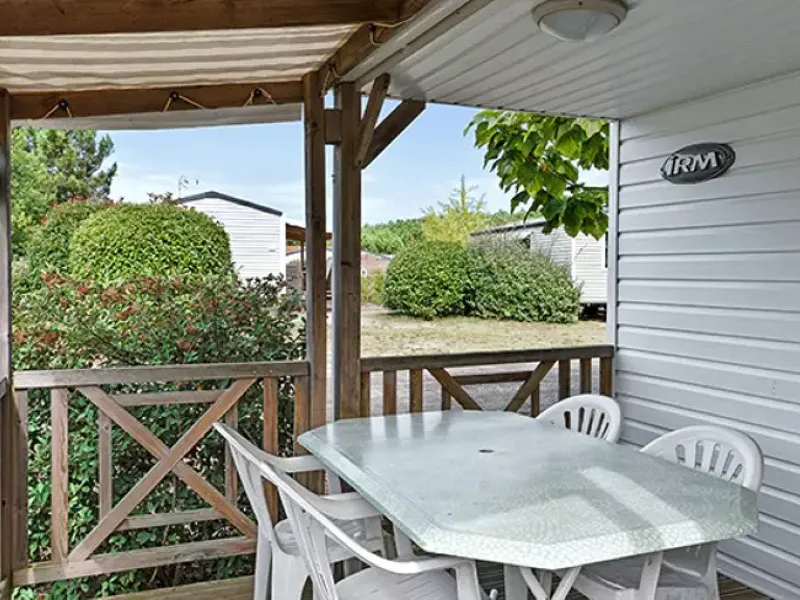Surface de 30 m², 1 chambre avec lit double, 1 chambre avec 2 lits simples superposés, salle d'eau avec lavabo, douche et WC séparés, terrasse semi-couverte, salon de jardin...