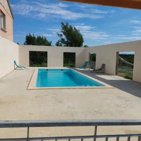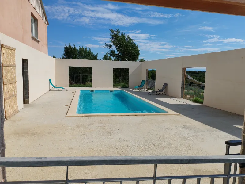 1 chambre avec 1 lit double, 1 chambre avec 2 lits simples, séjour avec banquette, climatisation, télévision, coin cuisine, douche et WC, terrasse semi-couverte...