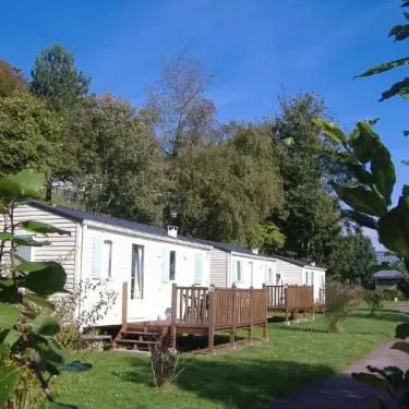 Surface de 27m², 1 chambre avec 1 lit double (140x190), 1 chambre avec 2 lits simples (80x190), cuisine équipée, télévision, salle de bain avec douche, WC séparés, terrasse couverte, salon de jardin...
