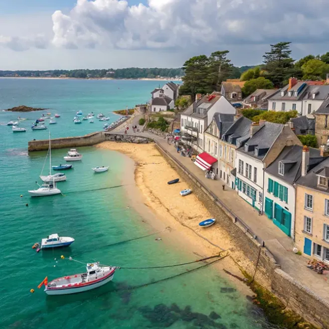 Bénodet est connue comme la station balnéaire « cinq étoiles » de la Bretagne. Bordée par l’océan Atlantique et traversée par l’estuaire de l’Odet, cette ville offre un cadre naturel exceptionnel. Son nom, issu du breton « Ben Odet » qui signifie « l’embouchure de l’Odet », reflète son lien étroit avec la mer et la rivière.