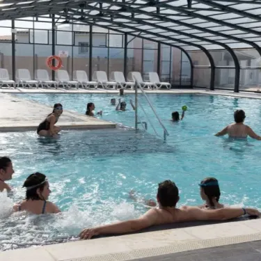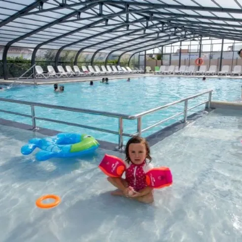 Profitez pleinement de l’espace aquatique du camping lors de votre séjour pour relaxer un maximum. D’avril à septembre, vous pourrez accéder à la piscine couverte et chauffée à environ 26°. Celle-ci est composée d’un grand bassin et d’une pataugeoire ludique pour les enfants. Le grand solarium et les nombreux transats vous permettront également de profiter un maximum du soleil et faciliter le bronzage.