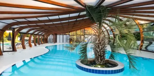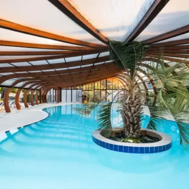 Lors de votre séjour, vous aurez l'opportunité de profiter d'un parc aquatique de plus de 650m², comprenant une vaste piscine extérieure, une piscine couverte chauffée, un toboggan, une pataugeoire réservée aux plus petits, ainsi que divers jeux d'eau.