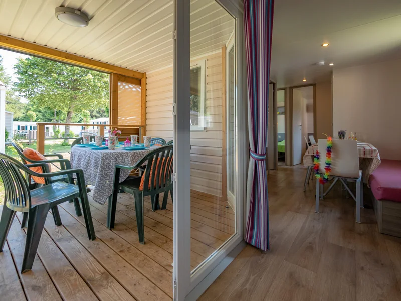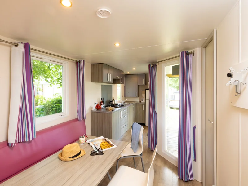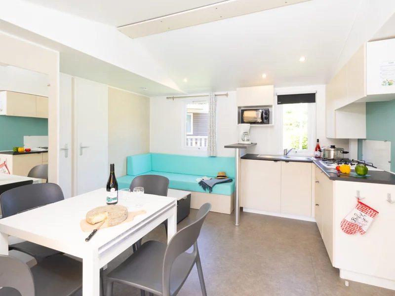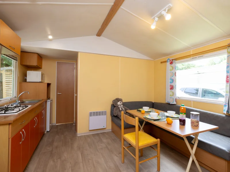 29 m² de surface, 1 chambre avec 1 lit double, 1 chambre avec 2 lits simples, 1 chambre avec 2 lits simples superposés, séjour avec coin cuisine, 1 salle de douche, 1 WC séparé, terrasse.