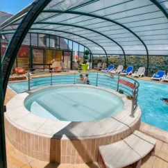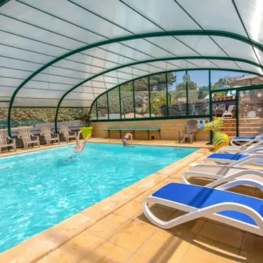 Sur place, venez-vous détendre et vous amusez sur l’espace aquatique du camping avec sa piscine couverte et chauffée à 26°, une pataugeoire pour les plus petits, des toboggans aquatiques et un espace pour vous détendre avec des transats et parasols.