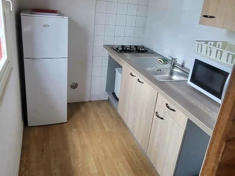 - Plaques cuisson, micro-ondes, réfrigérateur, cafetière, vaisselle et ustensiles de cuisines inclus