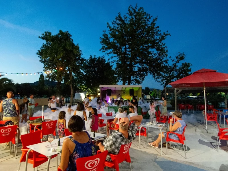 Durant juillet-août, le camping vous propose plusieurs fois par semaine des soirées animées pour toute la famille au programme : spectacle, soirée mousse ou pool-party, il y en a pour tous les goûts !