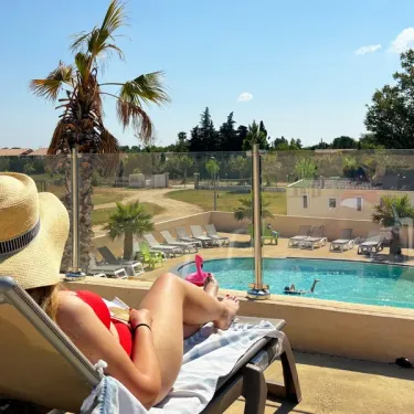 Avec son charmant espace aquatique composé de 2 toboggans, d'une piscine extérieure de 670m², d'un bain bouillonnant et d'une pataugeoire, vous pourrez vous détendre et vous amuser tout en admirant la vue sur le massif des Maures.