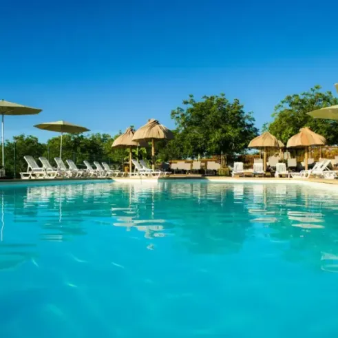 Si vous souhaitez profiter de jours ensoleillés pour vous relaxer et vous divertir, l'espace aquatique du camping est un excellent choix. Vous y trouverez une piscine extérieure chauffée, une pataugeoire et des chaises longues pour prendre des bains de soleil, créant ainsi une ambiance conviviale pour passer du temps en famille.