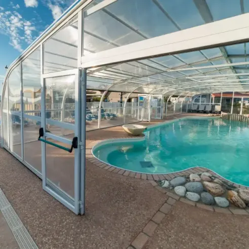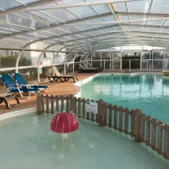 Relaxez-vous grâce la piscine couverte chauffée mise à disposition par le camping ! Profitez d'un moment de détente en famille ou entre amis, peu importe la météo. La piscine est chauffée entre 22 et 28°, de quoi convenir à tous les vacanciers. Dans la piscine couverte, vous pourrez nager ou participer à des cours d’aquagym, mais vous pourrez également profiter d’un espace en plein air pour vous détendre sur les chaises longues autour de la piscine.