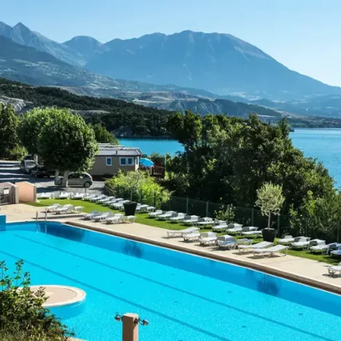 Découvrez le Camping L'Ecrin du Lac ***, situé à Chorges, en bordure du Lac de Serre-Ponçon, dans les Hautes-Alpes et profitez de la magnifique vue sur le lac et les montagnes environnantes.