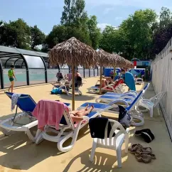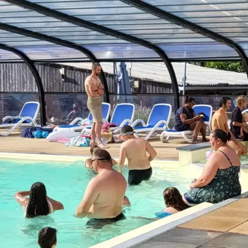 Plongez dans l’espace aquatique du camping pour vous rafraîchir ! Vous retrouverez une piscine couverte et chauffée, une pataugeoire, un espace aqualudique, des toboggans aquaslide et un espace bien-être payant. Des transats sont disposés autour de la piscine permettant ainsi de profiter pleinement du soleil.