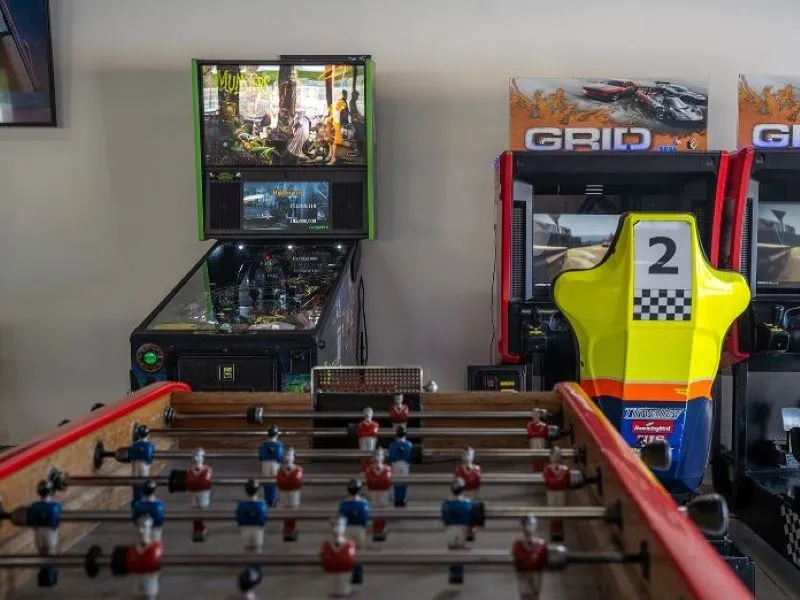 - Salle de jeux avec billard, baby-foot, flipper, voitures de courses, air hockey...