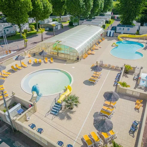 Pendant les beaux jours, profitez d’un moment de détente au camping La Ferme grâce à sa piscine couverte chauffée, idéale pour se rafraîchir et se relaxer peu importe la météo. Retrouvez également une piscine extérieure chauffée, une pataugeoire intérieure et extérieure ainsi qu'un toboggan aquatique !