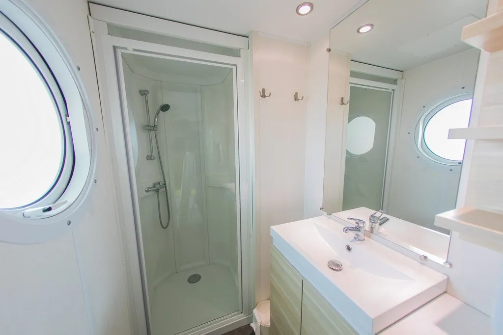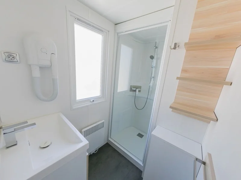 - Douche, lavabo, sèche-cheveux, WC séparés