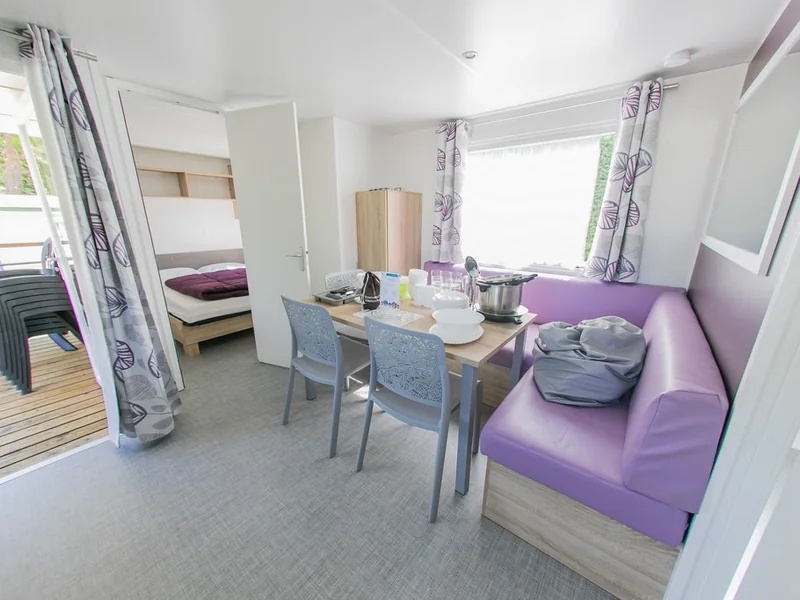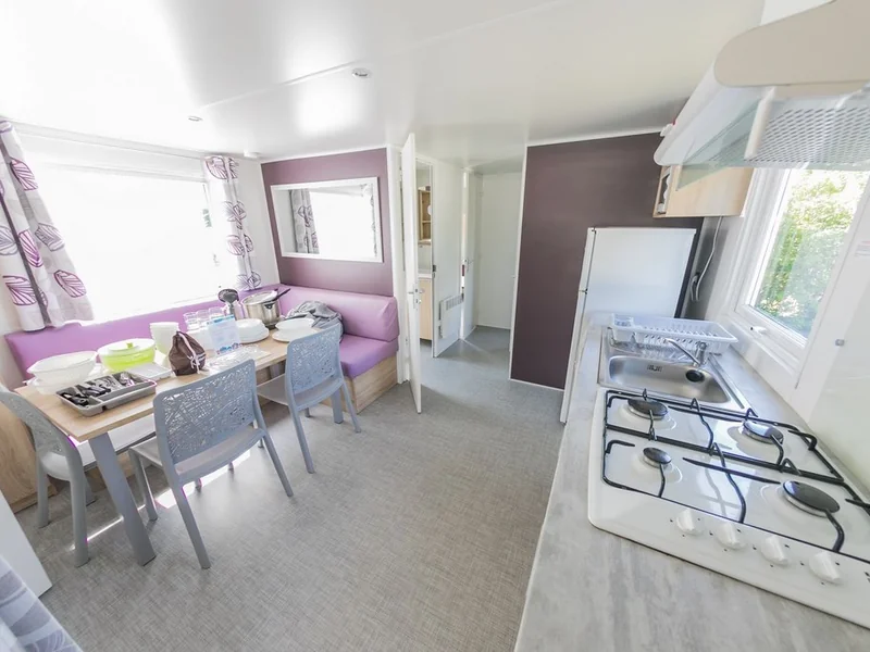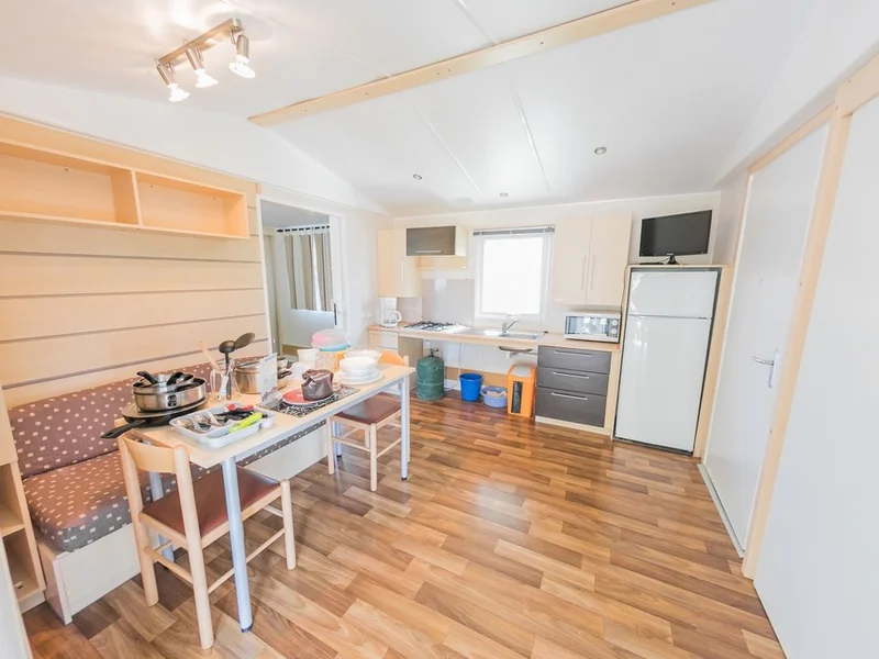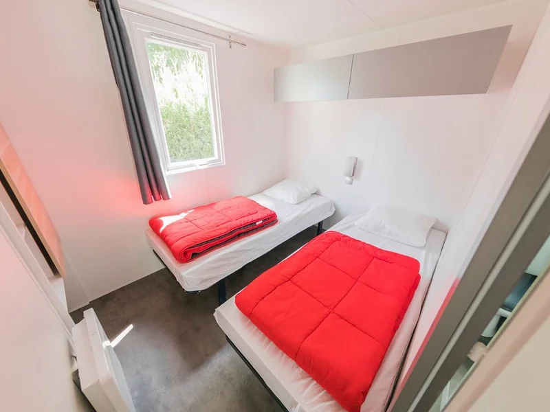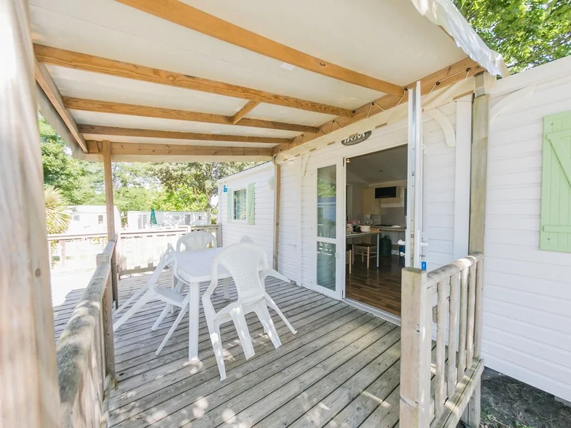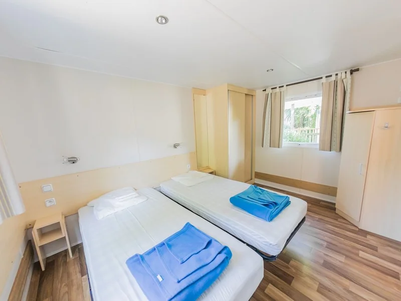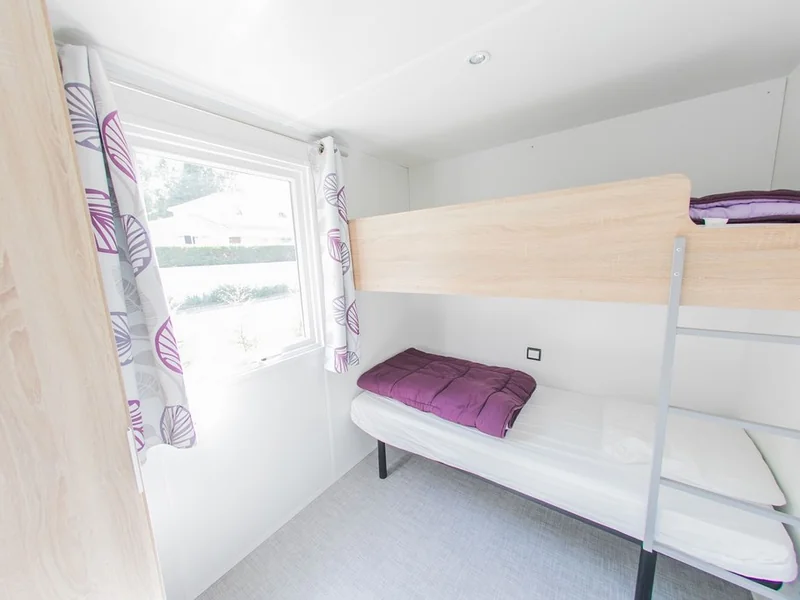 Surface de 32 à 34 m², deux chambres avec deux lits simples (1 en hauteur dans une chambre), coin cuisine, douche et WC séparés, terrasse...