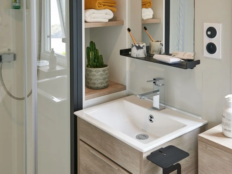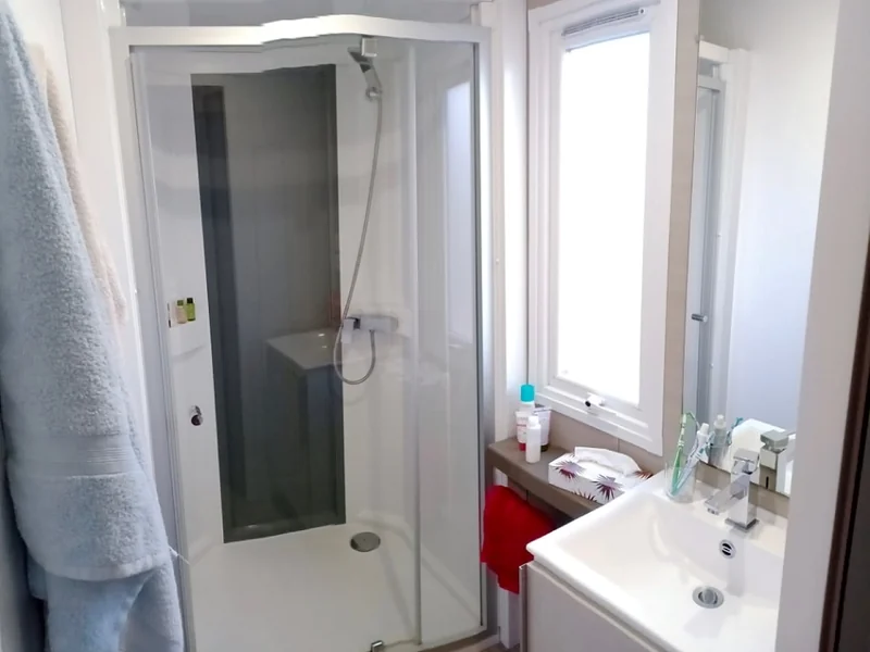 - Salle d'eau avec lavabo, douche et WC adaptés PMR