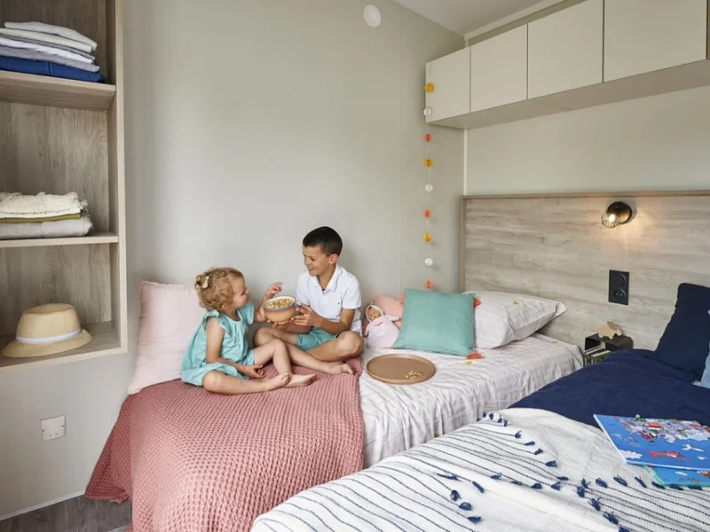 - Enfants : 2 x 2 Lits simples, oreillers et couvertures fournis