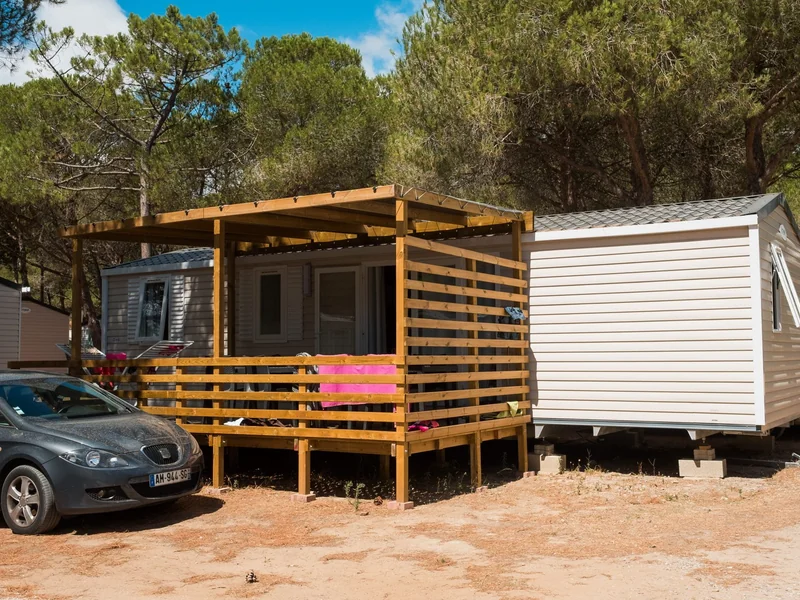 Cette location se compose de deux mobil homes de 2 chambres de 4 pers. de 29m² avec une terrasse commune de 20m².