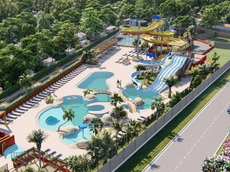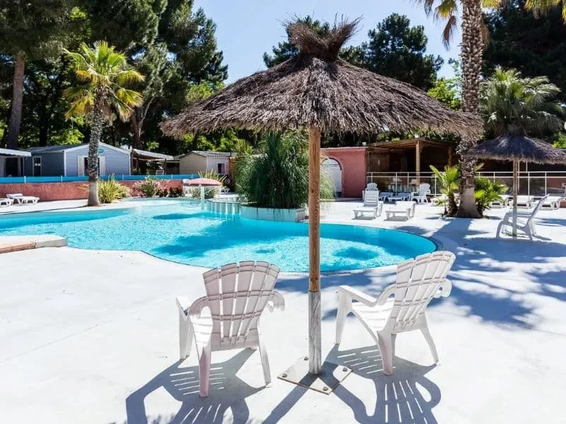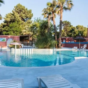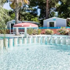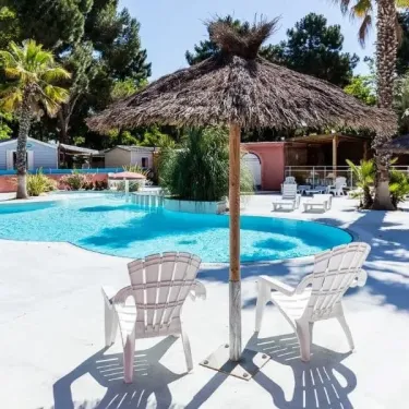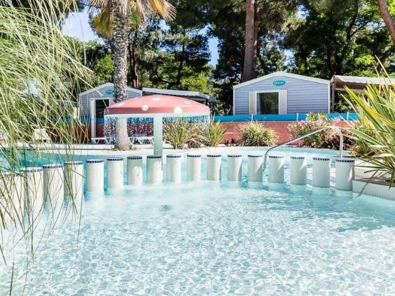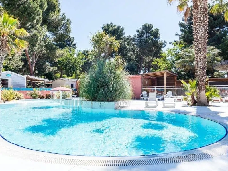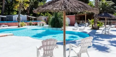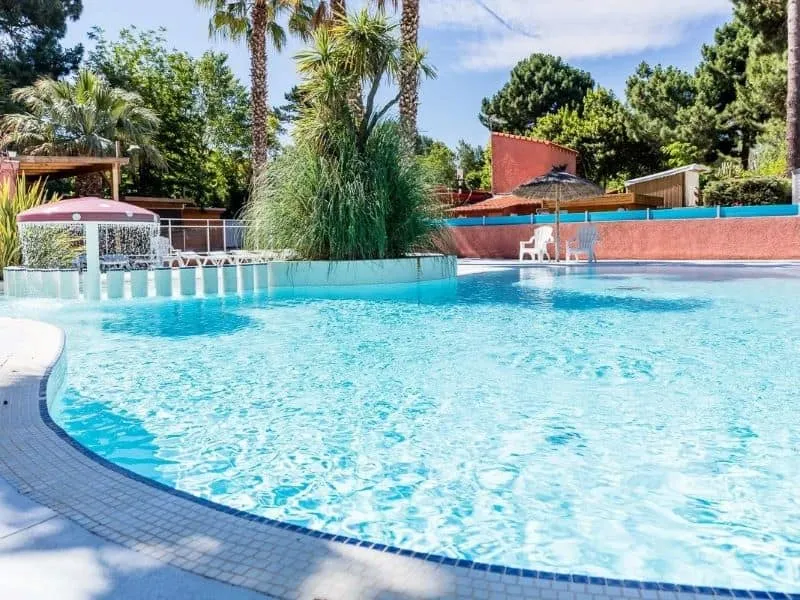Pour vous rafraichir, une piscine de 80m² entourée par une végétation tropicale vous attend sur le camping. Les enfants pourront ainsi profiter de la pataugeoire avec son arroseur champignon pendant que les plus grands profitent des transats à l’ombre des pins ou se détendent dans le jacuzzi.