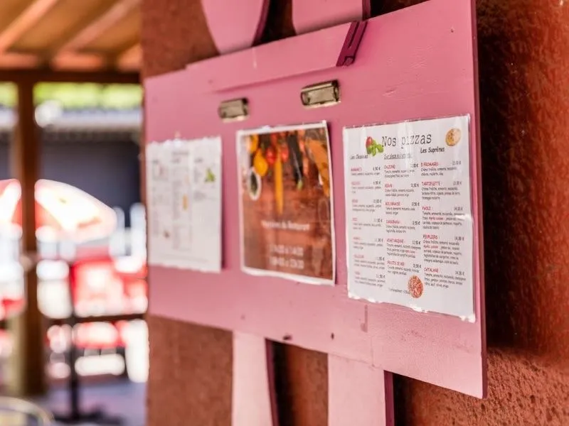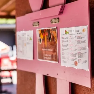 Restaurant, snack-bar, plats à emporter et dépôt de pain sont accessibles en haute saison