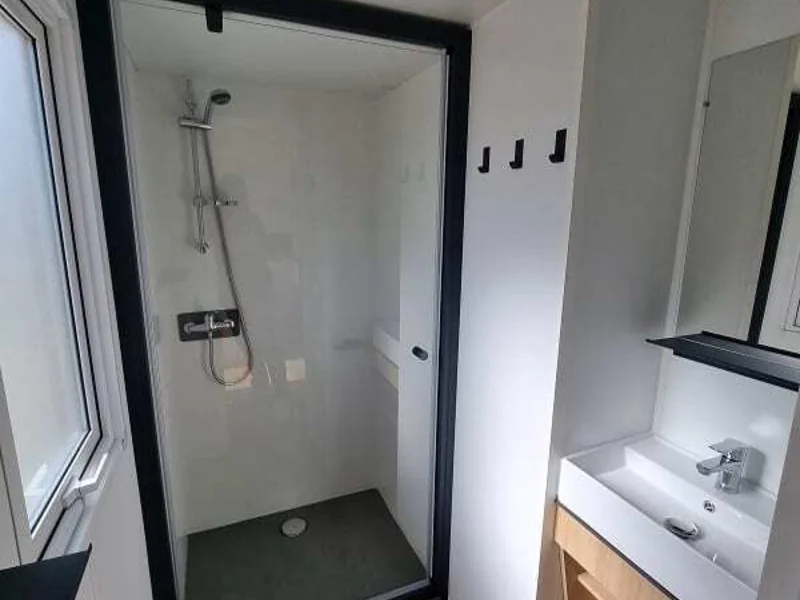 32 m² de surface, 1 chambre avec 1 lit double, 1 chambre avec 2 lits simples, salle d'eau avec lavabo, douche et WC, cuisine équipée, terrasse avec salon de jardin...