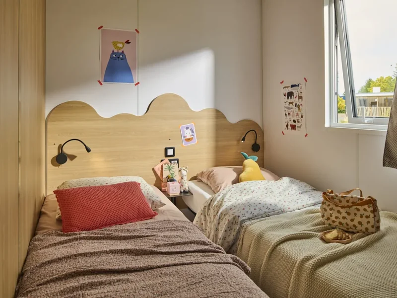 - Enfants : 1 lit simple 90x190 cm et 1 lit double de 140x190 cm, couverture et oreillers fournis