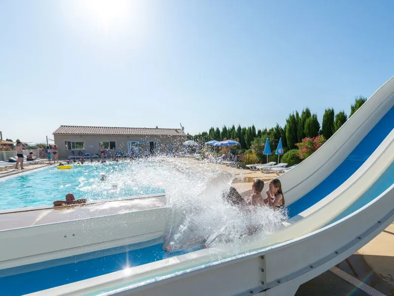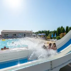 Sur les lieux, vous aurez accès à une piscine extérieure équipée de toboggans ainsi qu'à une pataugeoire...