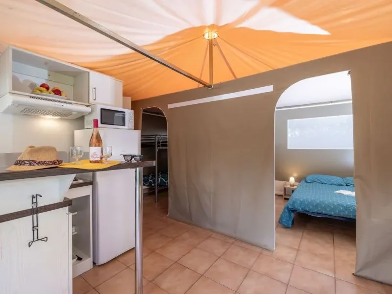 - Enfants : Un mezzanine avec 2 lits simples (accessible par une échelle de meunier)