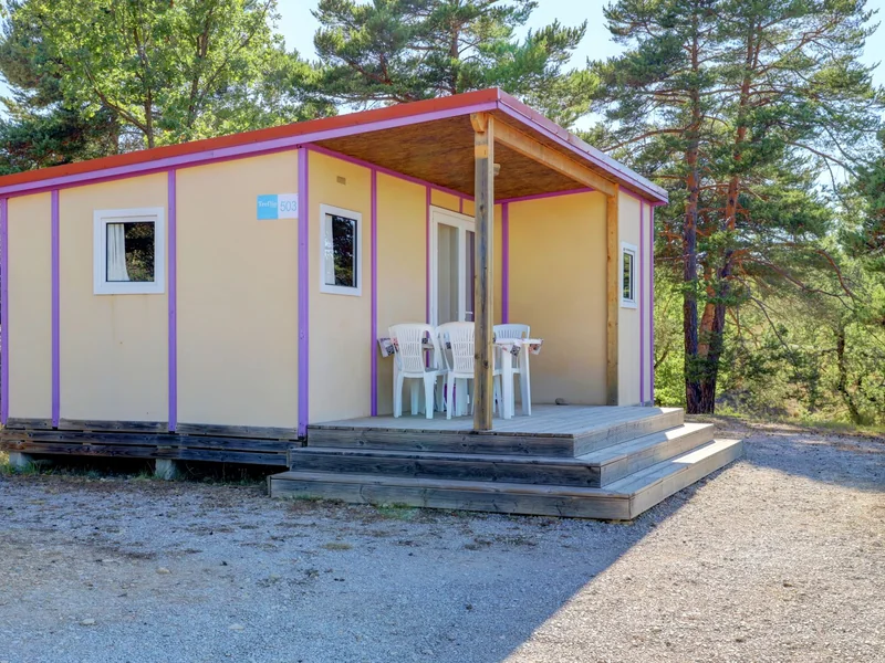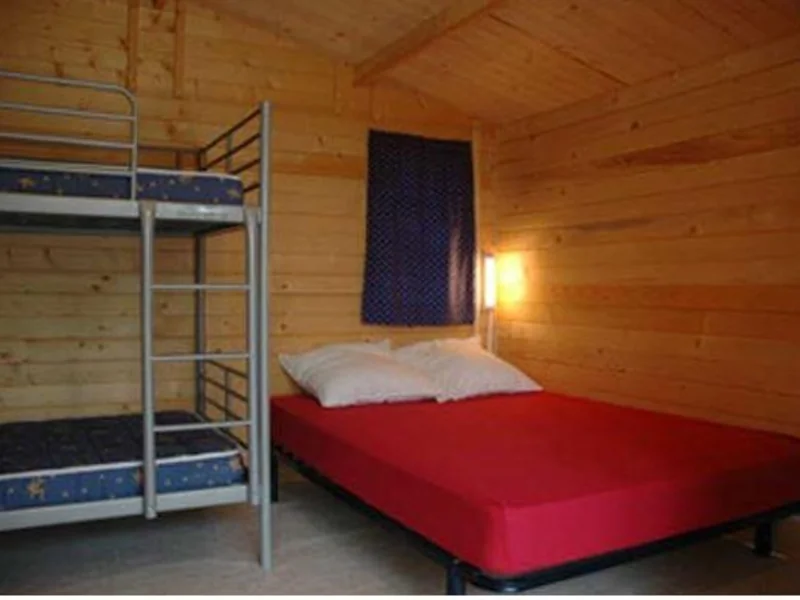 20 m² de surface + terrasse 6 m² semi-couverte, 1 Chambre avec 1 Lit double et 2 Lits superposés dans la pièce de vie, Coin Cuisine.