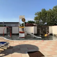 Vous aurez accès à un espace aquatique avec une grande piscine extérieure, un toboggan aquatique et une pataugeoire.