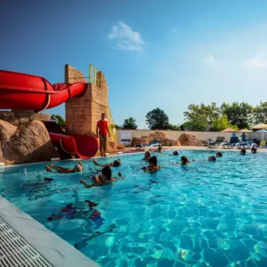 Le camping dispose d'un parc aquatique avec une piscine extérieure chauffée, un toboggan aquatique avec bassin de réception et une pataugeoire pour les plus petits. L'accès est libre aux horaires d'ouverture, qui sont à consulter sur place.