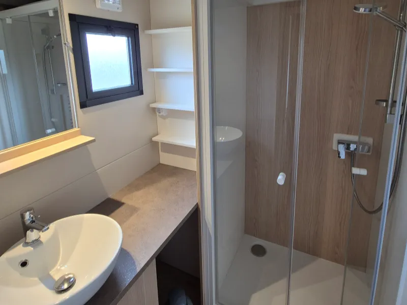 Surface de 20 m², 1 chambre avec 1 lit double, 1 chambre avec 2 lits simples, salle d'eau avec lavabo, douche et WC, cuisine équipée, terrasse avec salon de jardin...