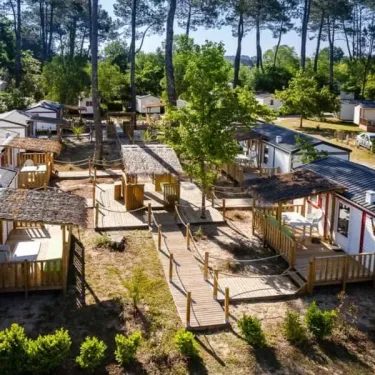 C’est à seulement 7 km des plages de la Côte d’Argent et dans un parc ombragé de 10 hectares que vous invite à séjourner le camping Le Soleil des Landes. Sur place, vous profiterez d’une ambiance propice pour vous détendre et profiterez d’un espace aquatique couvert, de toboggans aquatiques et d’une aire de jeux aquatique.