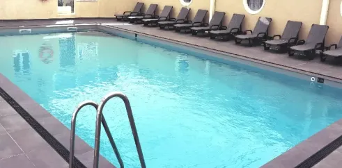 La piscine est accessible aux personnes à mobilité réduite grâce un pédiluve d’une largeur suffisante.