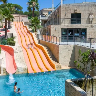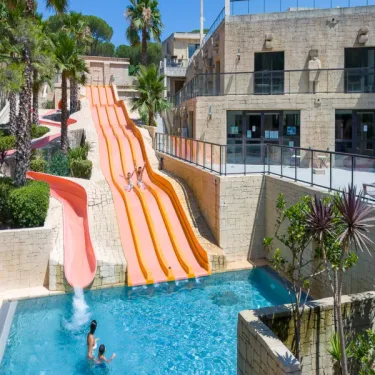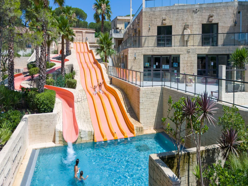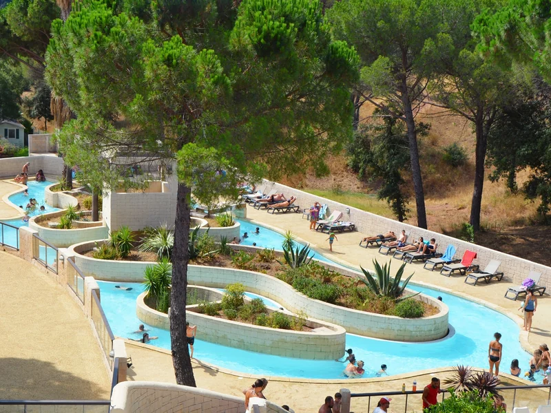 Vous profiterez sur place d’un espace aquatique, ouvert à partir d'avril avec 9 bassins, des toboggans géants dont 4 pistes de 35 mètres et 1 piste de 75 mètres en boucle, une pyramide maya, une cascade arrosant un lagon de 400 m², une piscine traditionnelle, un bassin thalasso et 1 bassin à bulles de 40 places, une rivière à courant rapide de 120 mètres et deux pataugeoires avec des jeux pour enfants, vous pourrez passer des journées entières à vous amuser dans l'eau. De fin août à fin octobre, 3 bassins ainsi que les toboggans sont ouverts : lagon pataugeoire chauffé (accessible PMR), piscine traditionnelle, bassin à bulles chauffe et toboggans.