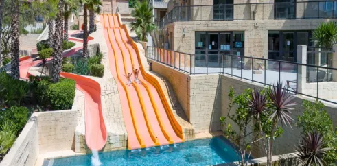 - Toboggans géants qui dévalent une pyramide maya : 4 pistes de toboggans de 35 m et 1 piste de 75 m en boucle