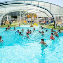 Venez plonger dans une ambiance calme et apaisante et profiter d'un moment de détente dans notre piscine avec un toit amovible chauffée avec pataugeoire, ouverte toute la saison.