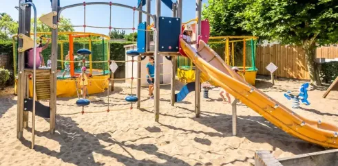 - Aire de jeux pour enfants en accès libre avec toboggan, trampolines et balançoires