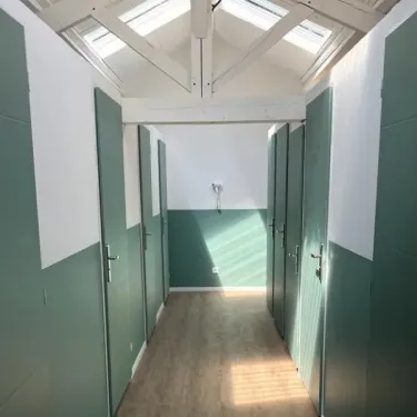 - Bloc sanitaire avec pmr, wc enfant, baignoire bébé, table à langer et bac à vaisselle