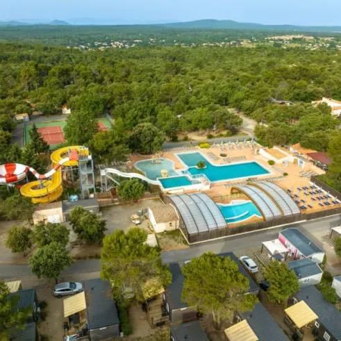 Le climat du sud de la France invite à profiter pleinement du parc aquatique : piscines, banquette à remous, aire de jeux aqualudique pour les plus jeunes et grands toboggans qui feront le bonheur des ados.