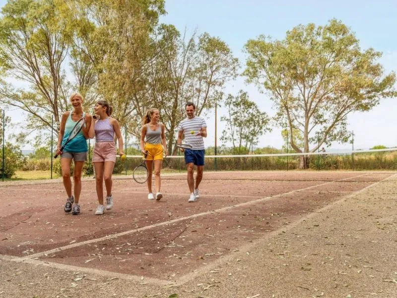 Activités disponibles dès l'ouverture : aire de jeux pour enfants, terrain de tennis, terrain de volley-ball, terrain de boules, tables de ping-pong, mini-golf.