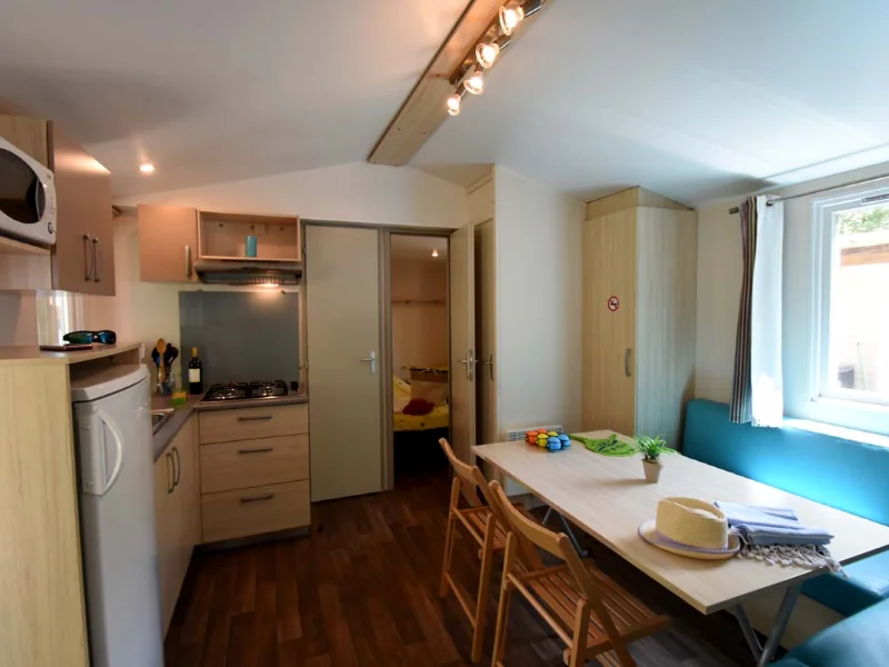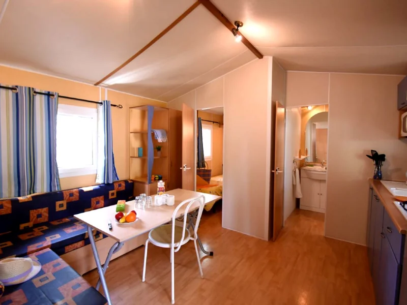 - Banquette convertible en lit double (enfants de 15 ans maximum), table, chaises, climatisation, télévision