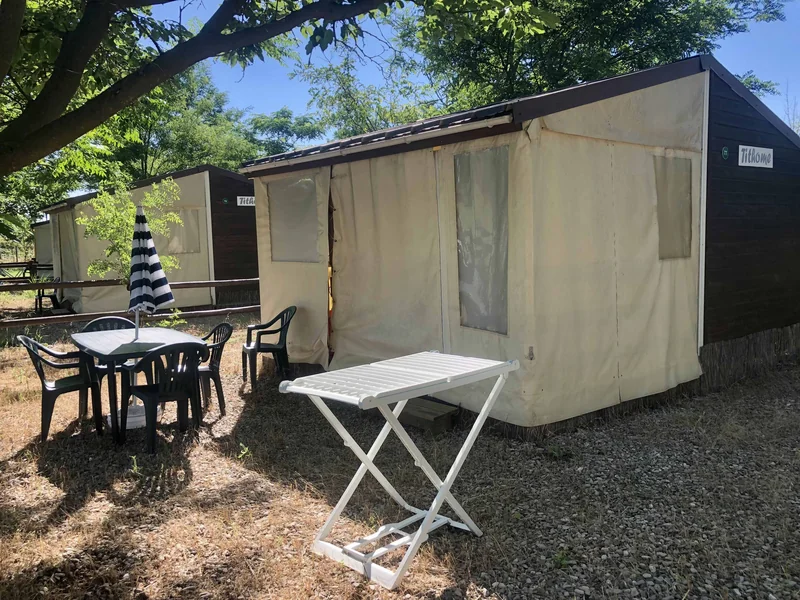 - Pas de sanitaires (sanitaires du camping), WC