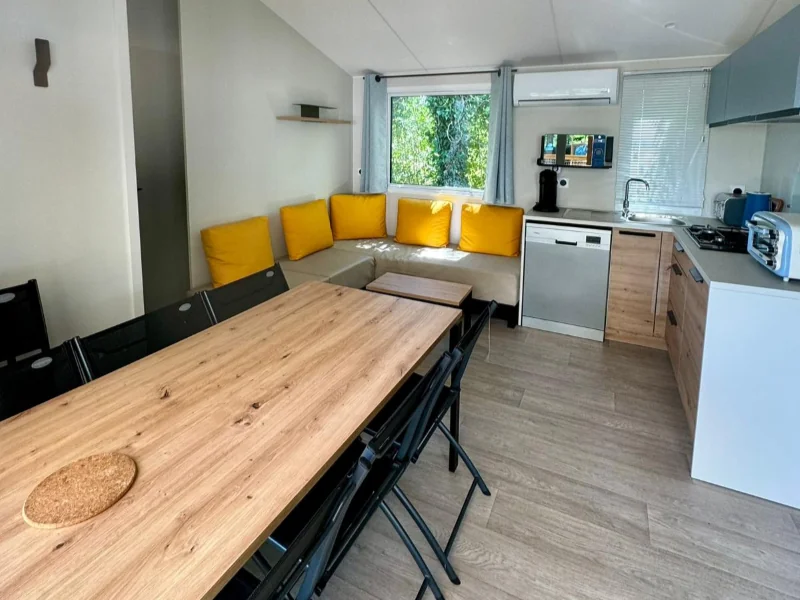 - Banquette, table, chaises, climatisation, télévision