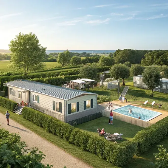 Aquatique Vacances vous invite à séjourner au Camping Paradis Île de Kernodet, situé à Saint-Molf en Loire-Atlantique, un cadre idéal pour profiter de vacances en famille. Niché entre marais salants et plages de l’Atlantique, ce camping 4 étoiles allie confort et détente, offrant une expérience unique au cœur de la presqu’île de Guérande. Les mobile homes vacances proposés par Aquatique Vacances permettent de passer un séjour agréable, avec tout le confort nécessaire pour se sentir comme chez soi, tout en profitant pleinement de l’atmosphère chaleureuse et conviviale du camping. Chaque hébergement est pensé pour accueillir familles et groupes d’amis, garantissant des moments de partage inoubliables dans un cadre naturel préservé.