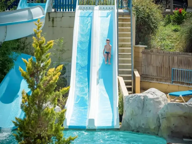 Retrouvez lors de votre séjour deux espaces aquatiques, dont un couvert et un en extérieur ! Même si le temps n’est pas adéquat, vous aurez la possibilité de vous baigner grâce à la piscine couverte chauffée du camping. En extérieur, vous retrouverez un beau par aquatique composé de différentes profondeurs de bassins, dont une piscine chauffée, de toboggans, d’une pataugeoire avec jeux aqualudique. Profitez également des transats et bains de soleil qui sont mis à votre disposition pour vous détendre un maximum au soleil.