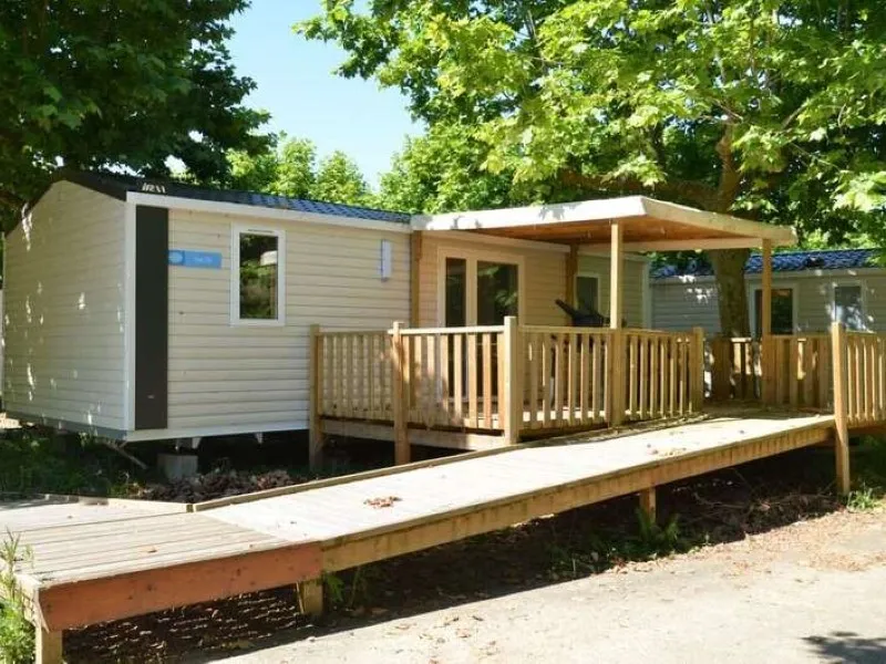 Surface de 27 m², 1 chambre avec 1 lit double, 1 chambre avec 2 lits simples superposés, salle d'eau avec lavabo, douche et WC séparés, cuisine équipée, télévision, terrasse avec salon de jardin...