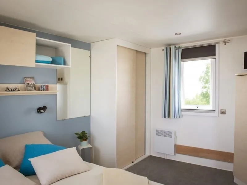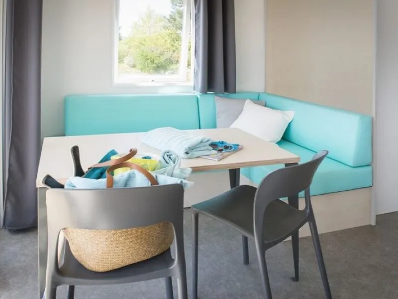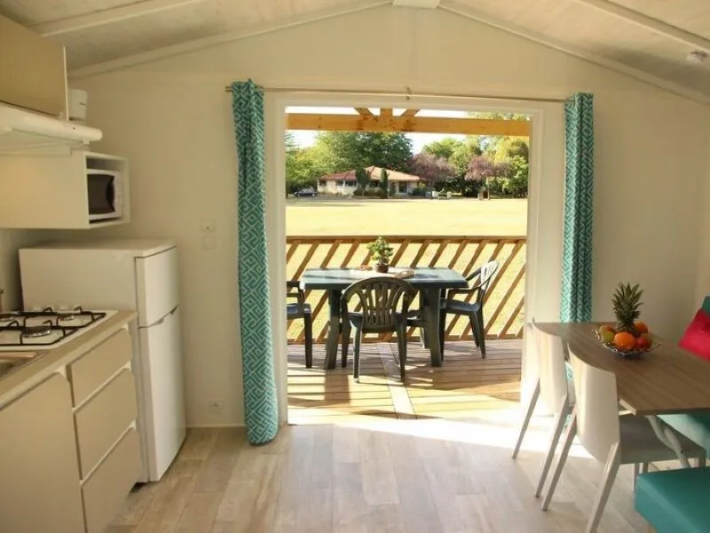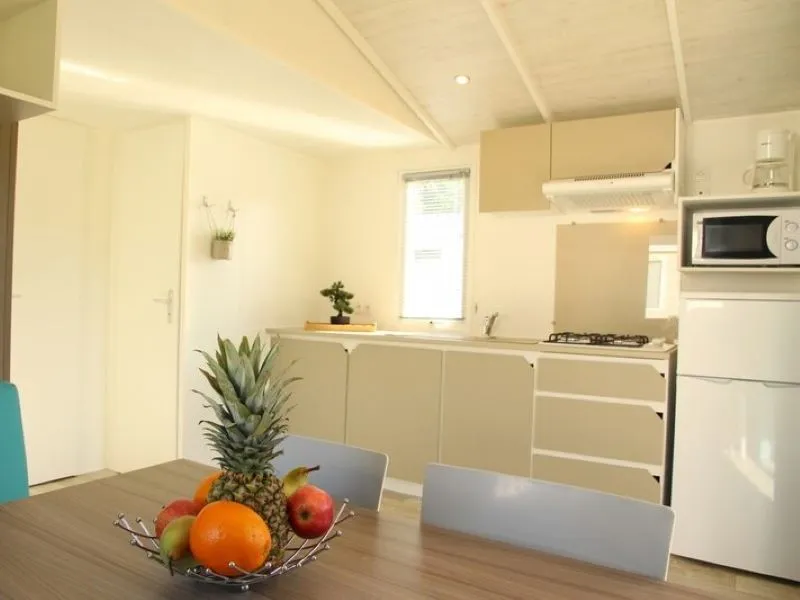 Surface de 27 m², 1 chambre avec 1 lit double, 1 chambre avec 2 lits simples, 1 chambre avec 3 lits simples dont un superposé ou gigogne, salle d'eau avec lavabo, douche et WC séparés, cuisine équipée, télévision, terrasse avec salon de jardin...