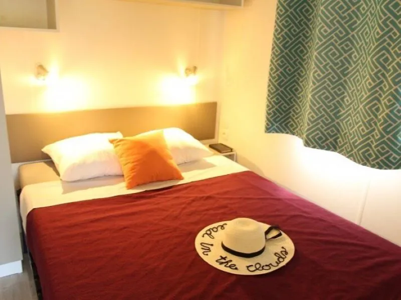 Surface de 27 m², 1 chambre avec 1 lit double, 1 chambre avec 2 lits simples superposés, salle d'eau avec lavabo, douche et WC séparés, cuisine équipée, climatisation, télévision, terrasse avec salon de jardin...